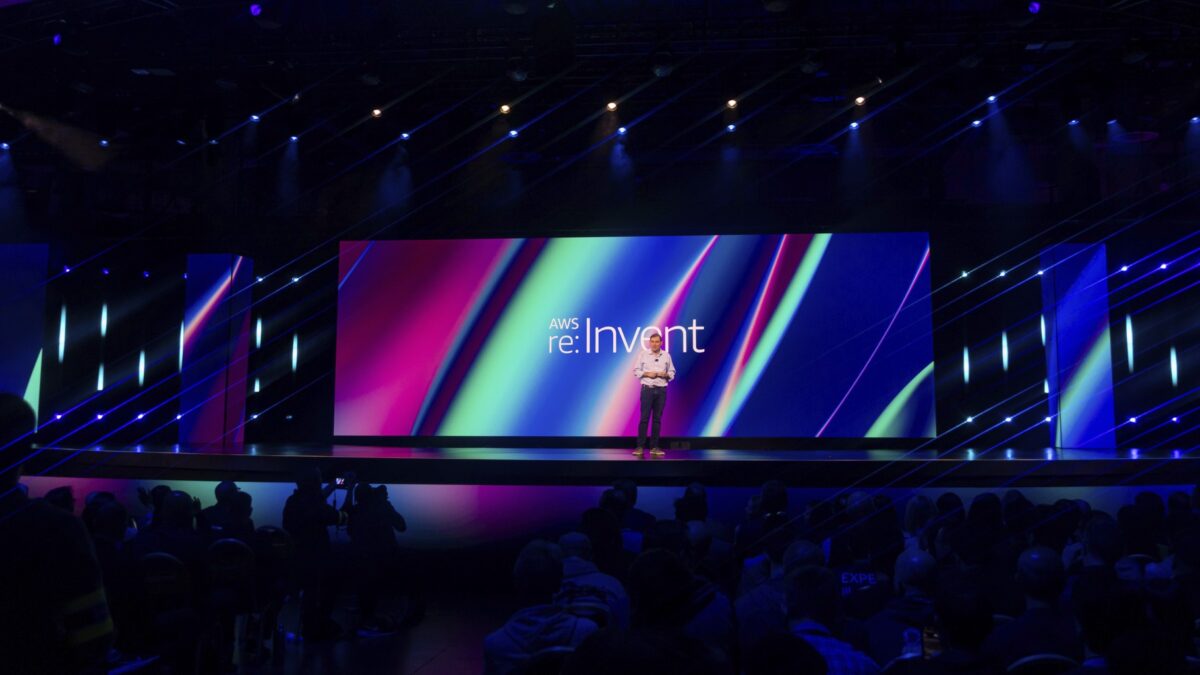 ” alt=”AWS re:Invent 2025 keynote stage with AI announcements”/>